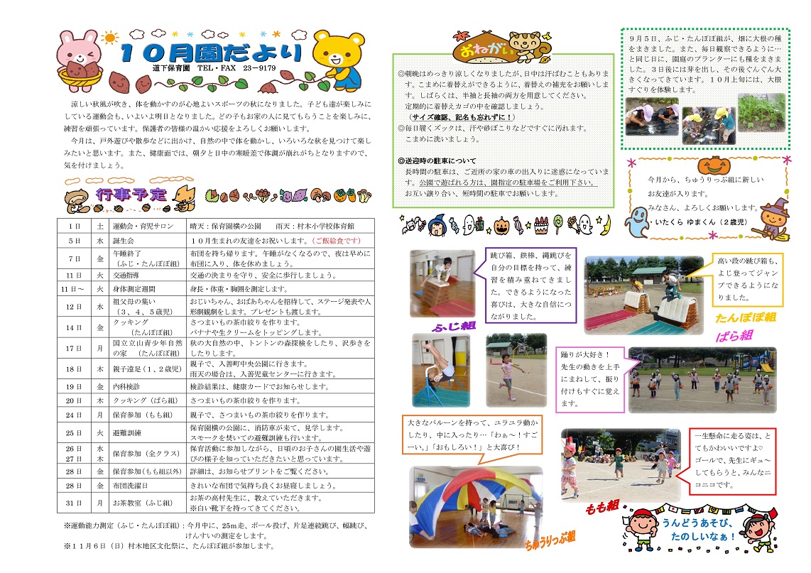 道下保育園の園だより(平成28年10月号)