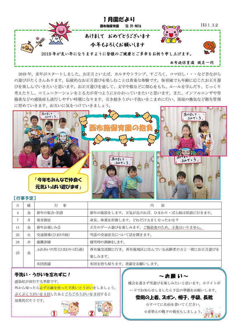 西布施保育園の園だより(平成31年1月号)