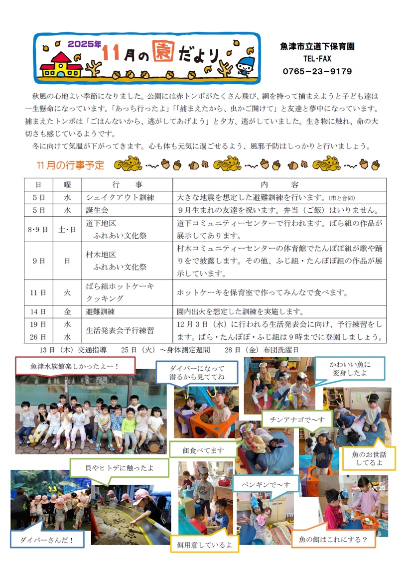 道下保育園令和7年11月園だより