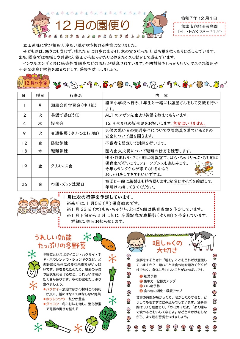 経田保育園の園だより(令和7年12月号)