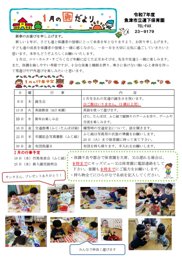 道下保育園令和8年1月園だより