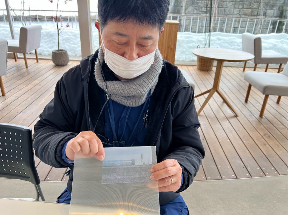 野村氏による写真解説と、見る角度で絵が変わる不思議な板(レンチキュラー)を使って蜃気楼を再現するカード作りを行います。